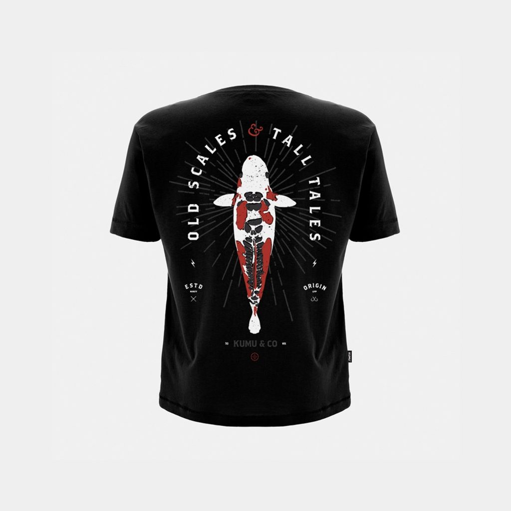 Old Scales & Tall Tales (staré šupiny & dlouhé příběhy). Další kousek, který nás znovu tvořivě žene novými směry a udržuje naše nápady svěží a vzrušující! Na přední straně s designem koi kapra na prsou a na zadní straně velký koi kapr s nápisy. Materiál 100% bavlna, 140gsm. K dostání ve čtyřech dětských velikostech!