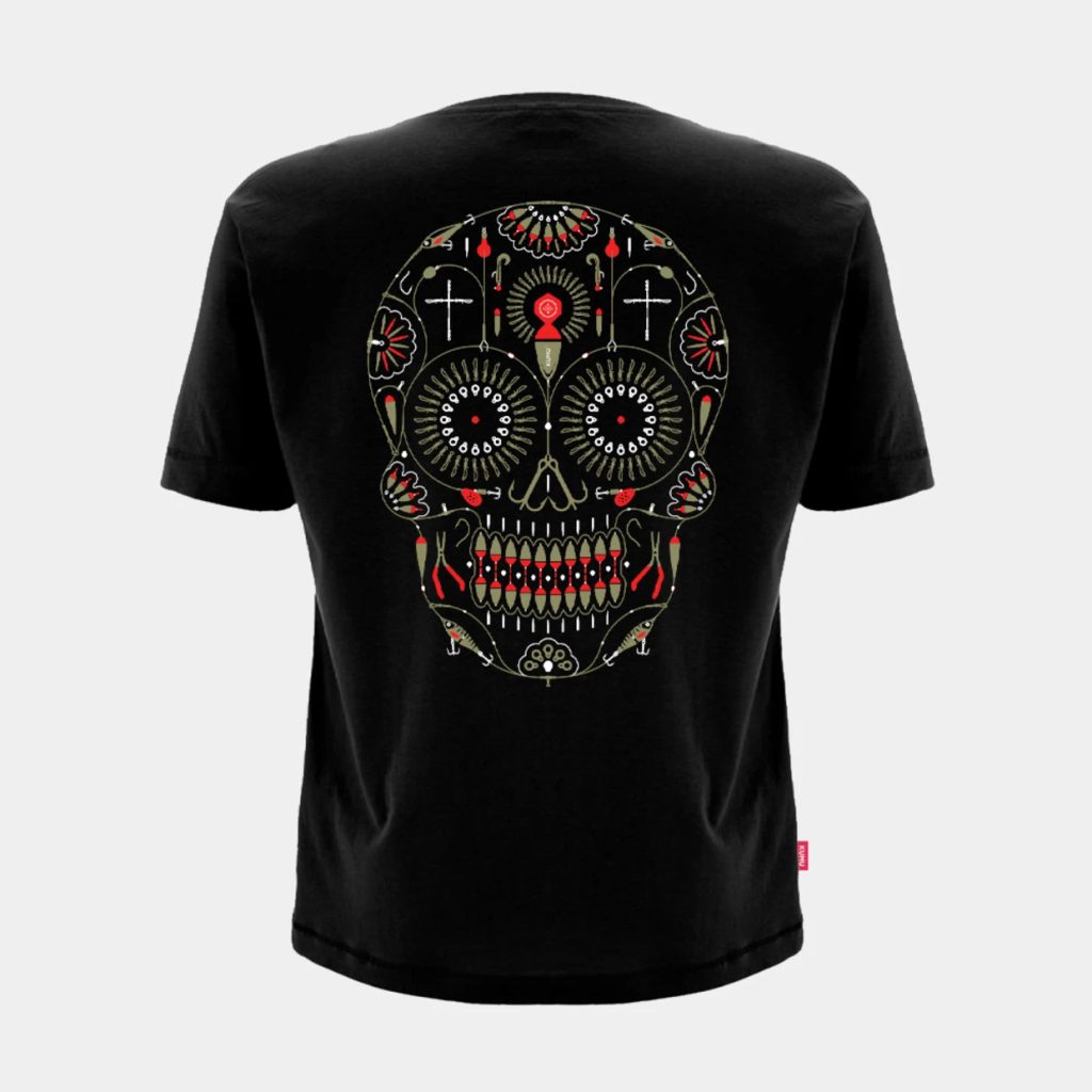 Grafika, která pro nás všechno začala, vzkříšená z mrtvých, tentokrát... s nádechem predátora. Mexická cukrová lebka inspirovaná Día de los Muertos (Den mrtvých) vyrobená z různých rybářských potřeb pro lov dravců. Pokud jste s námi od samého
