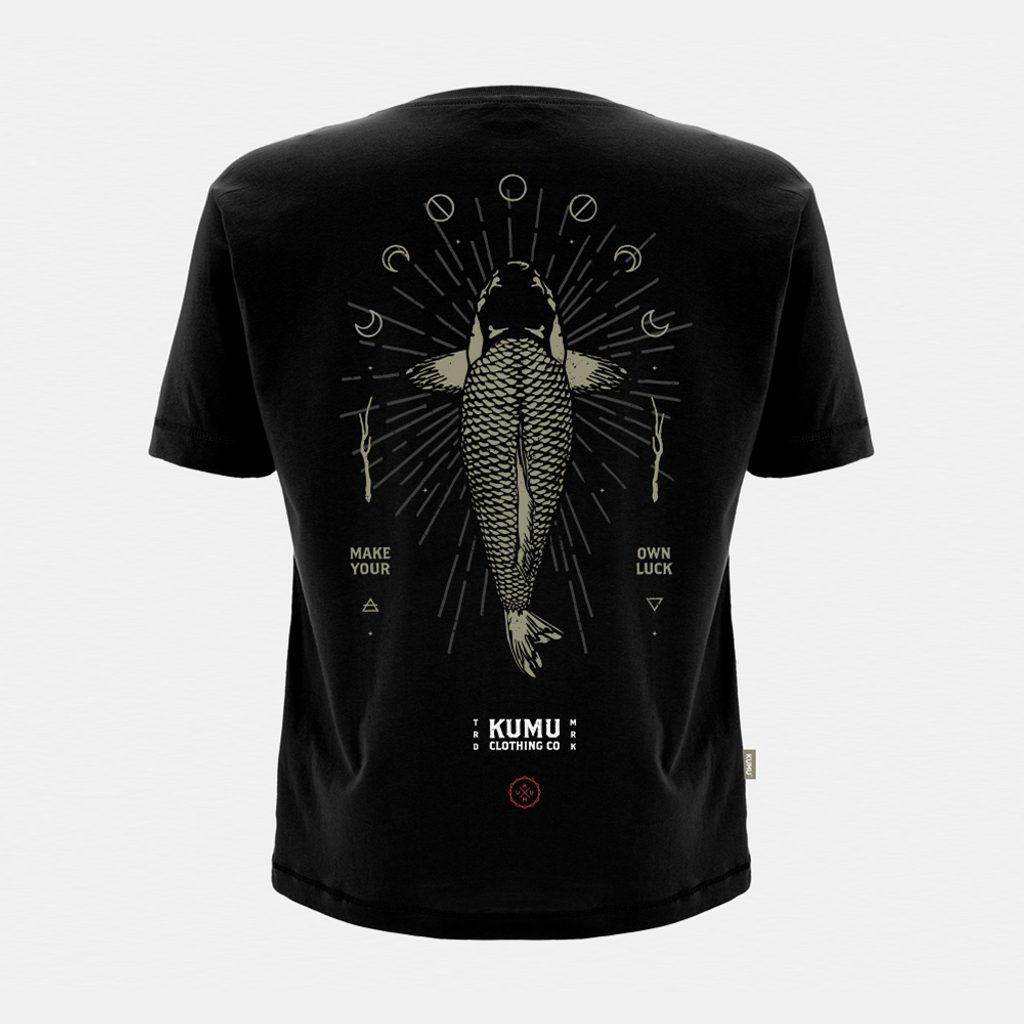 Make Your Own Luck znamená „Buďte strůjcem svého štěstí.“ Tento slogan se ptá na to, jakou roli hraje štěstí při našem rybaření. S tolika vnějšími vlivy, které jsou mimo naši kontrolu, z nichž všechny hrají svoji roli, od fází měsíce až po tlak vzduchu, pěvně věříme filozofii, že pouze my sami jsme strůjci svého vlastního štěstí. Nejen v rybaření, ale i v životě obecně. Ručně kreslená grafika vytištěná na super měkké 100% bavlněné tkanině 165gsm se starobylými detaily v mosazném provedení.