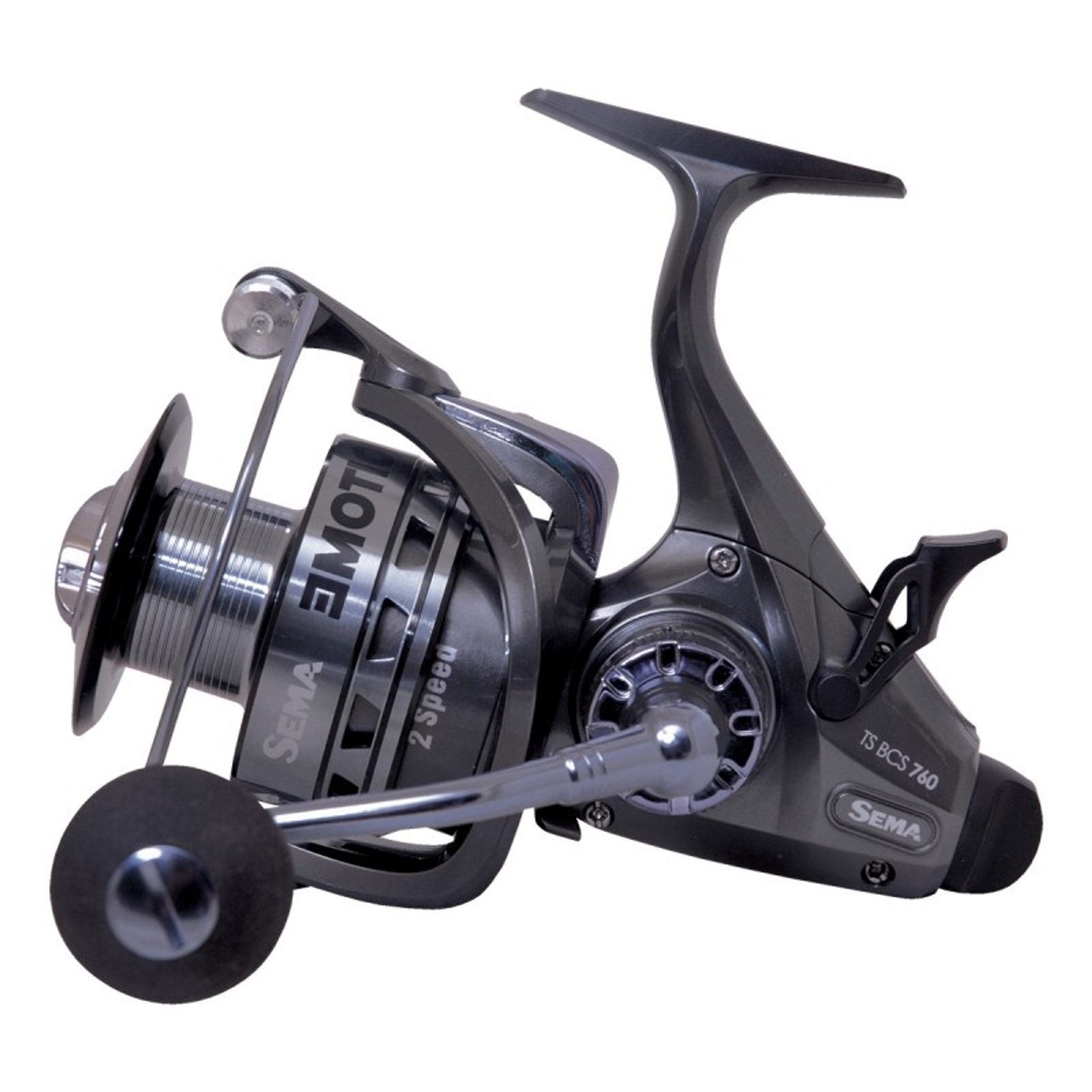 Dvourychlostní naviják s únikovou brzdou. Rychlejší převod lze použít na stahování při zavážení nebo dlouhých odhozech. Pomalejší a tím i silnější převod lze použít při zdolávání ryby.