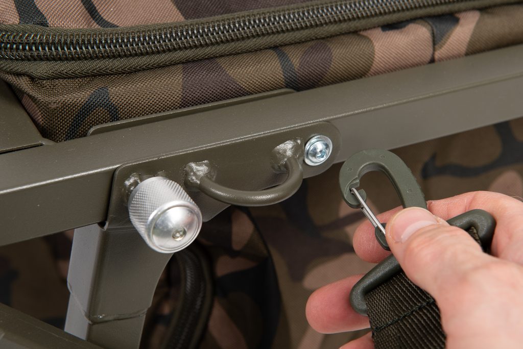 - Součástí balení je camo spodní vak Under Barrow Bag, který se jednoduše zavěsí do středu rámu, kompatibilní s novou kolekcí obalů Fox Camolite.