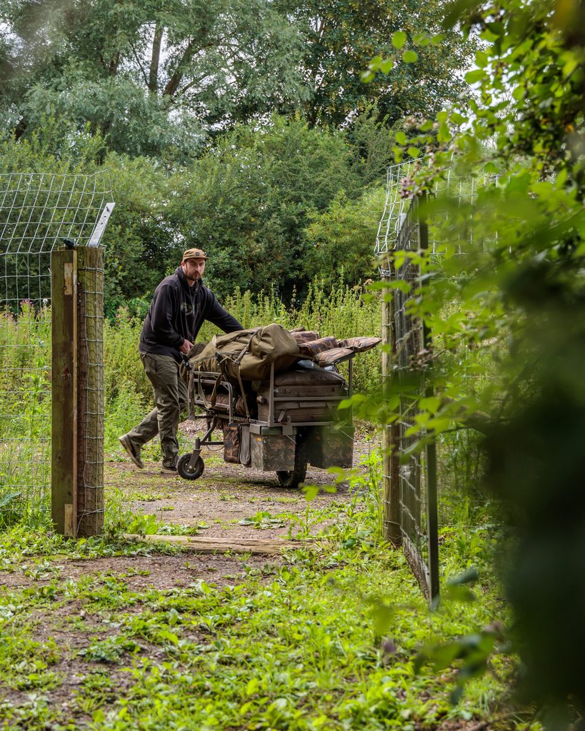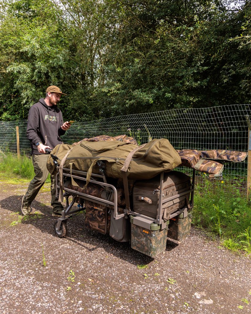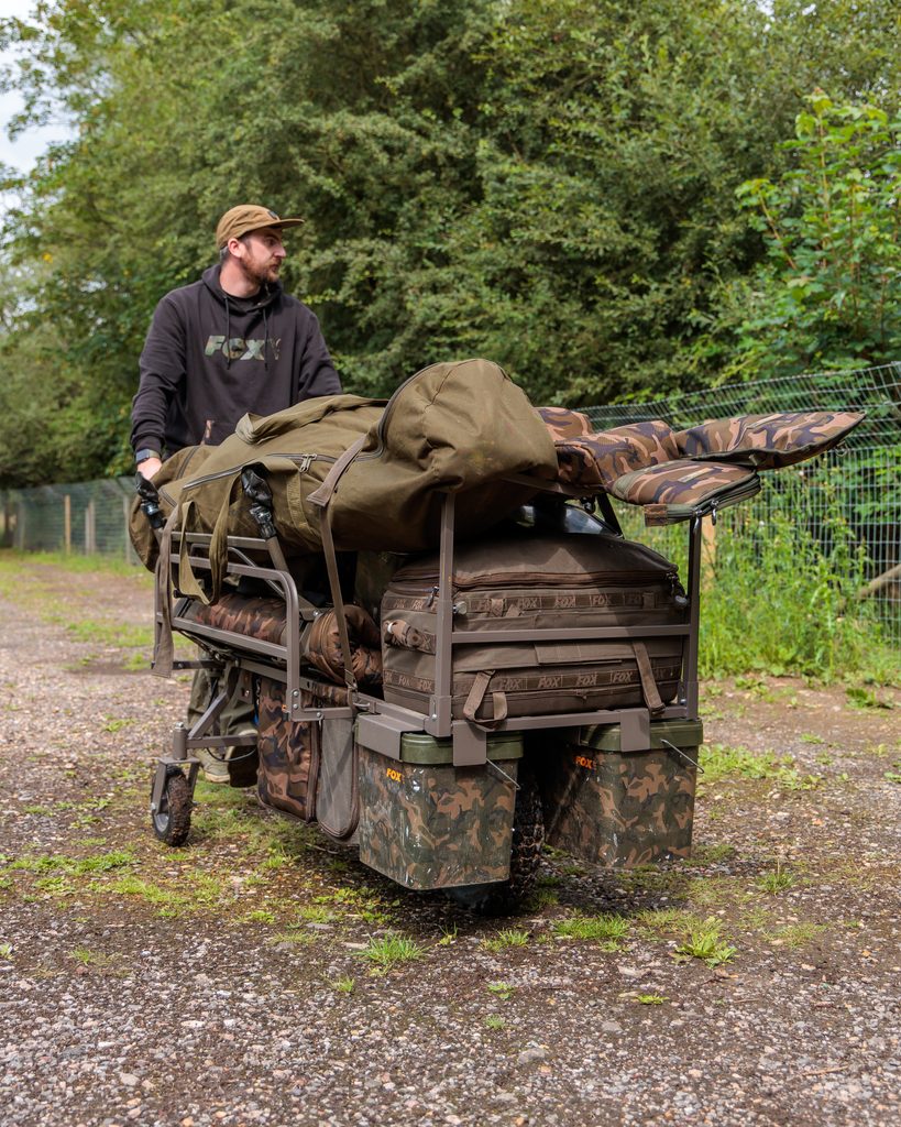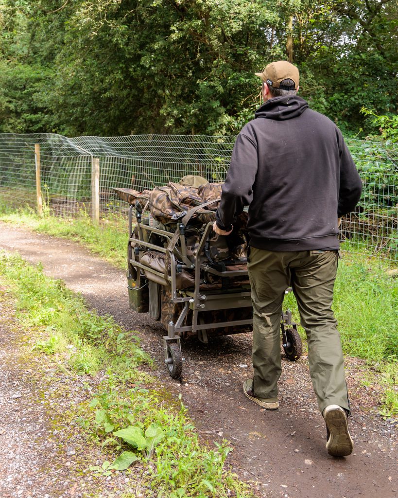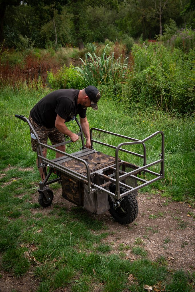 - Spodní taška vozíku je snadno přístupná shora nebo i z obou stran při mobilní rybaření„z vozíku ”