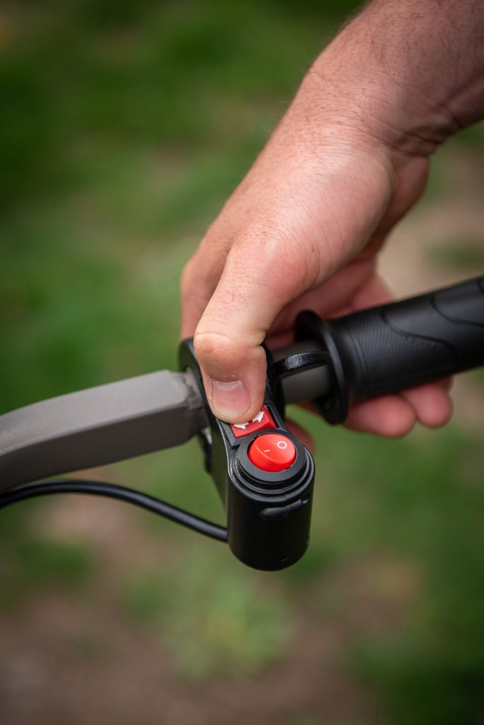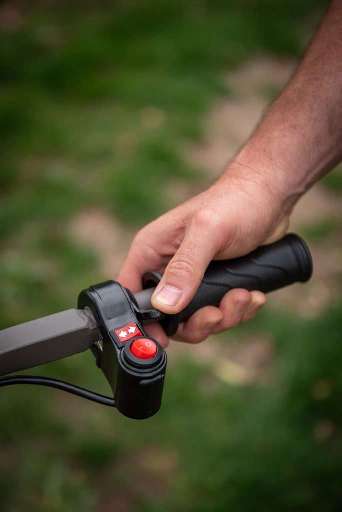 - Ergonomicky tvarované výškově nastavitelné rukojeti s křížovou vzpěrou pro maximální pohodlí