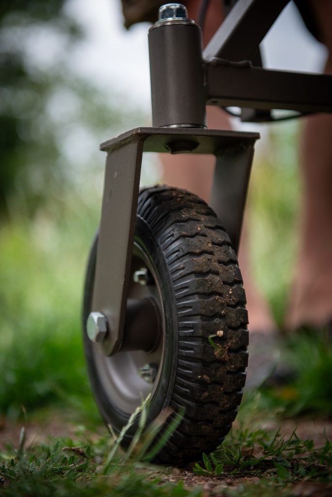 - Dvě zadní pojezdová kolečka otočná o 360°