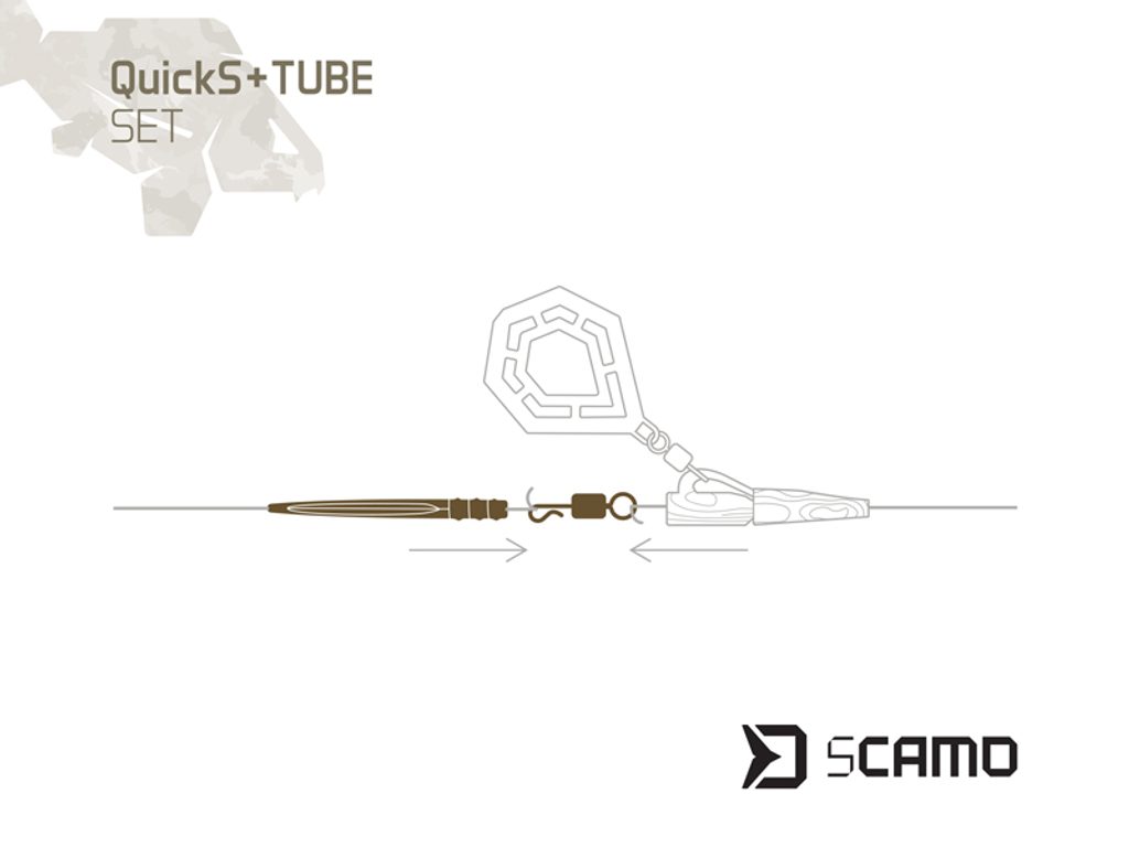 Praktický set kombinuje rychloupínací obratlík QuickS a gumičku proti zamotání ze série kaprařské bižuterie sCAMO.
